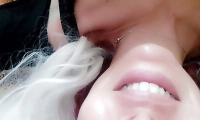 The granny tramp moans like a whore when masturbating her hairy and fat pussy, she cums like a greedy whore