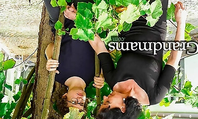 Granny Milf checks his stepgrandson girlfriend before allowing them to boink