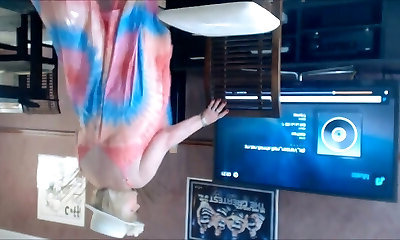Milf TRYS ON BLACK HEELS ANS ORANGE SKIRT