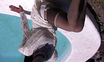 Moist Ass Pussy Big Booty White Chick Gets Fucked In Pool With Lingerie Finished With A Footjob Cumshot