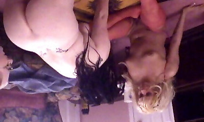2 Chubby Busty Ebonies & 1 Bodacious Blonde White-skinned Babe Share The Tennis Instructor's Big Black Cock In 4some