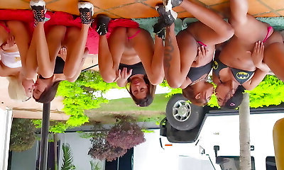 Amateur dark-hued babe Harmony Raine gets pounded by her fuck machine until she's drenching wet