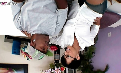 Brunette midget loves black cock